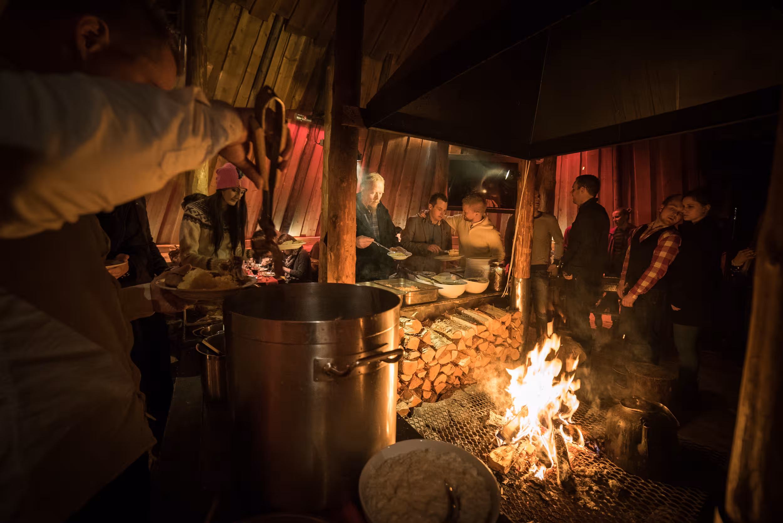 - Traditional Arctic stew served around the open fire in a Sámi-style gamme